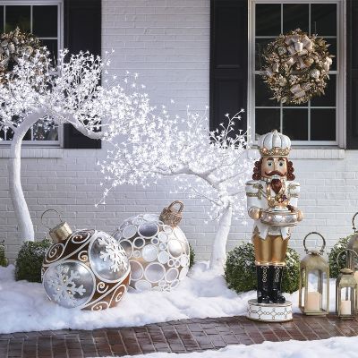 New for 2020 these stunning christmas tree figures feature a tall gold glittered tree with tiny little gold branches with bright red jewels! 4.6 out of 5 stars. Plus, decorated outdoor christmas trees, pathway lights and more. Northlight gki/bethlehem lighting 68' green and red led lighted leaping reindeer topiary christmas outdoor decor. 20% coupon applied at checkout.